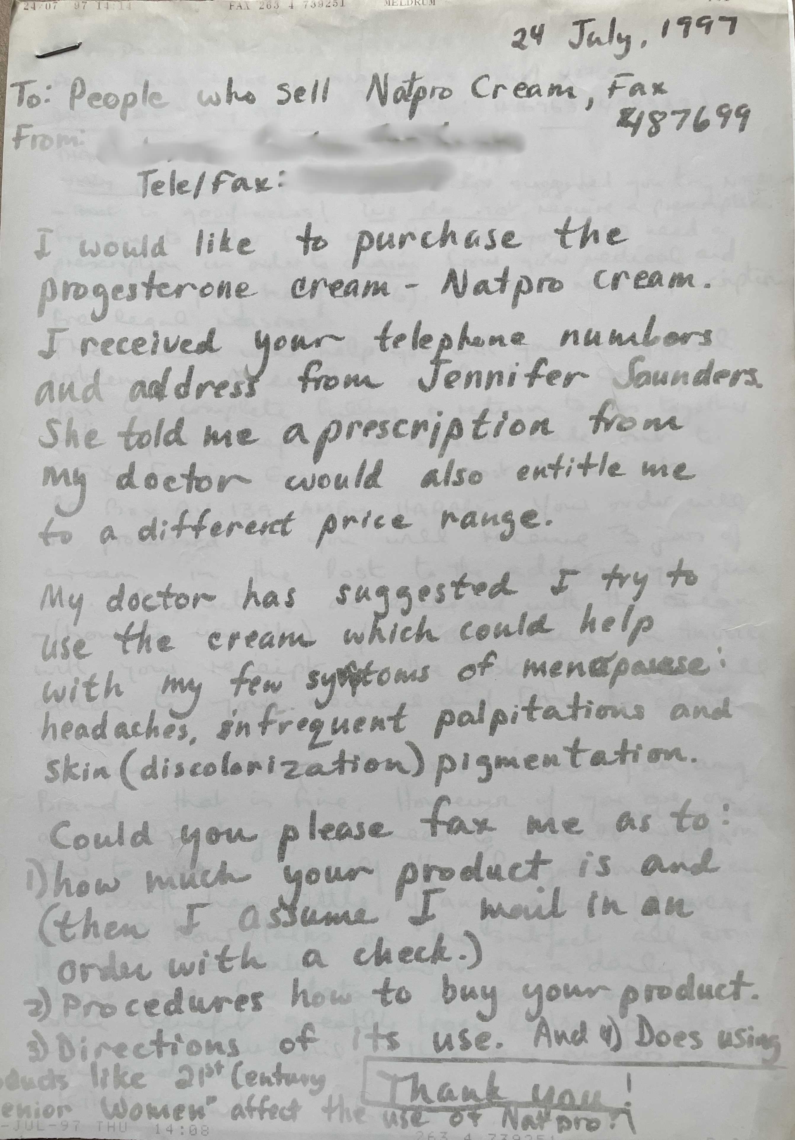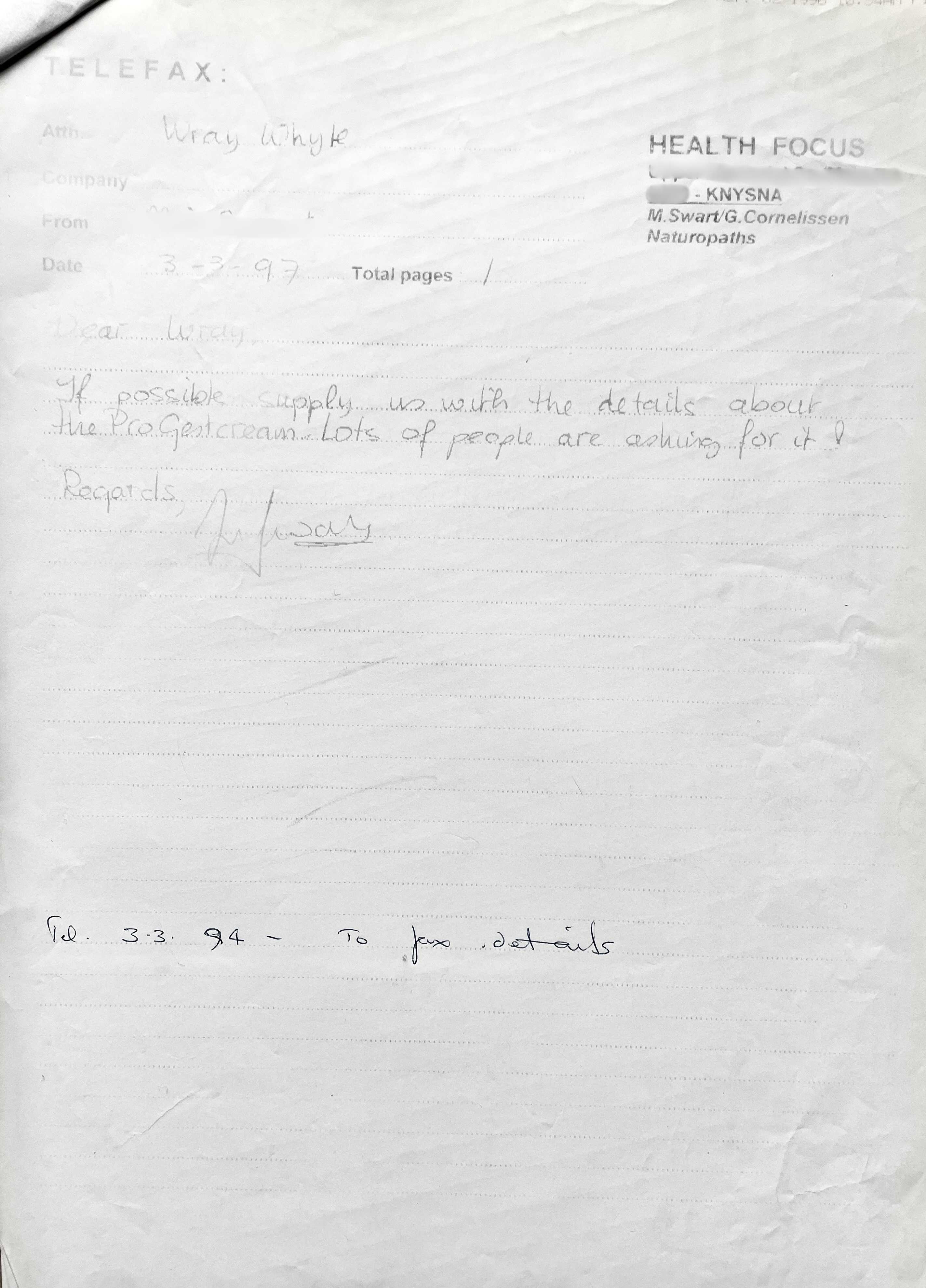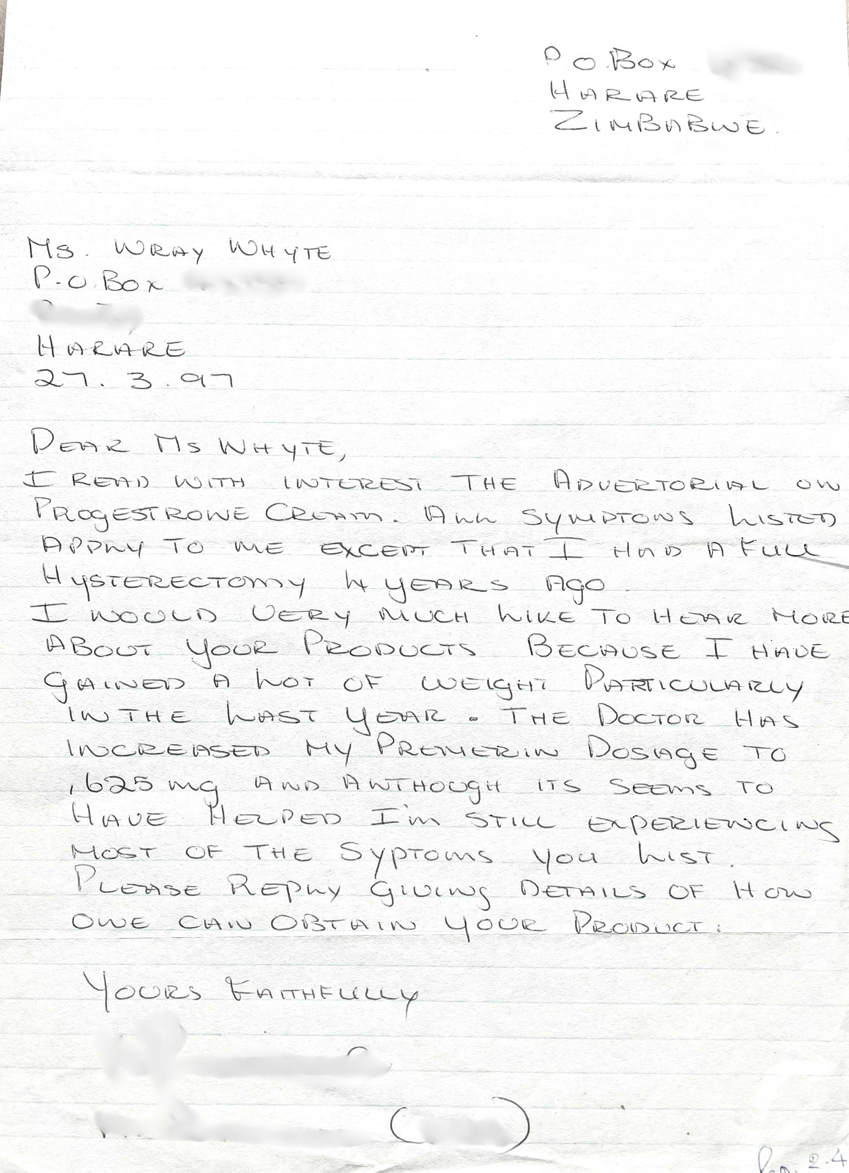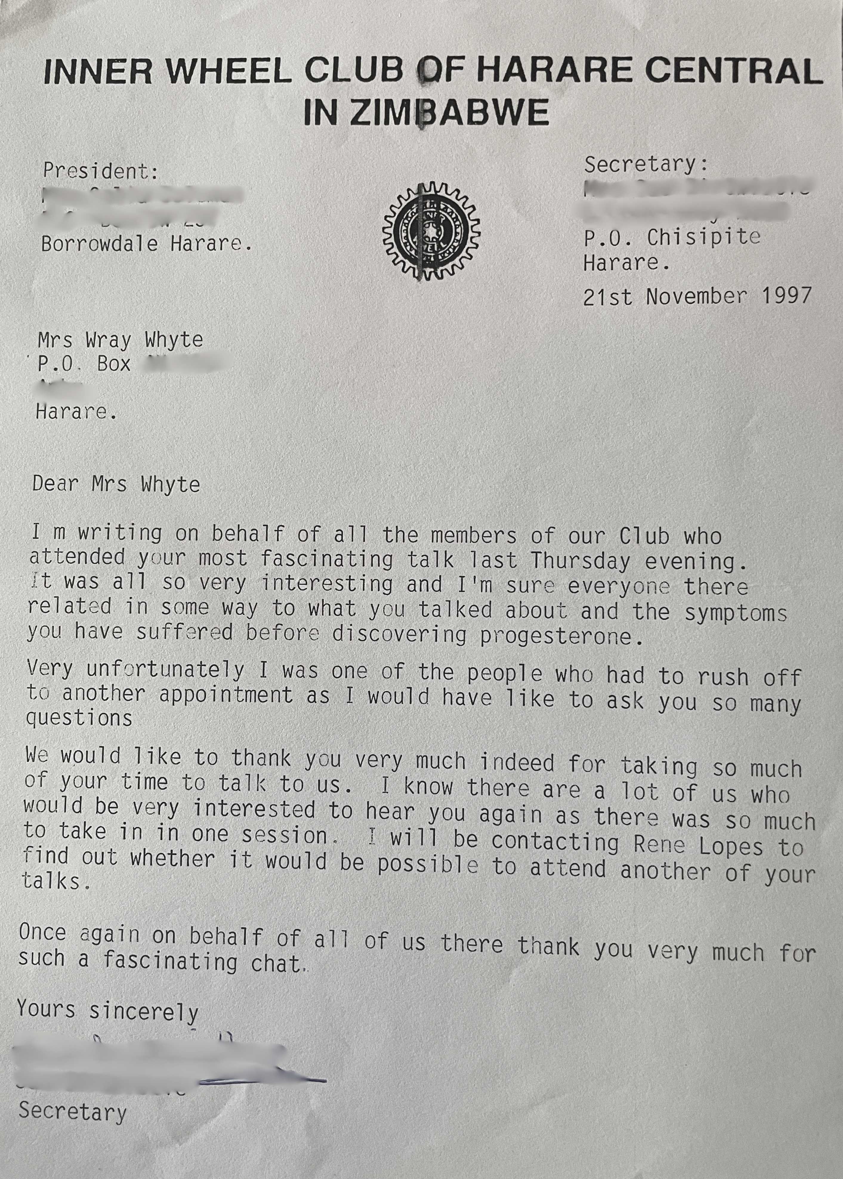 Over the years of Wray's travels to share information on the benefits of bio-identical progesterone she had many people write to her in gratitude, to request further information and to invite her to talk to groups and on radio. Here is just a small sample of the thousands of letters she received.